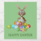 Osterhasen mit Körben von farbigen Eiern. Personalisierte Karte als Geschenk für Ihre Lieben.