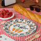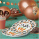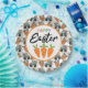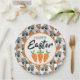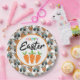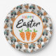 Eine schöne Osterplatte in farbenfroher Typografie und Polka-gepunktete Karotten