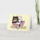 Niedliches Tabby mit langem Haar Kätzchen sitzend in einem Osterkorb mit einem ausgestopften Osterhase. Ostereier rund um den Korb.