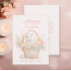 "Happy Oaster" Grußkarte mit einem kleinen Lamm in einem Osterkorb, umgeben von sanften rosa und pfirsichfarbenen Blume. Text, Schriftart, Schriftart und Farbe sind vollständig anpassbar, sodass diese Karte perfekt auf Ihre Bedürfnisse Anzug.