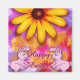 Frühlingsblumen und rosafarbene bunnies wünschen Happy Oaster...netter Magnet, um Ihre Sammlung hinzuzufügen und auf Ihrem Kühlschrank anzuzeigen. com