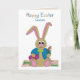 Niedlicher Ostersonnenhase mit großem Ostereier und Blume für diesen kleinen Typ. Siehe ähnliche Bilder für Jungen, Mädchen und einige für Familien.