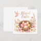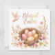 Zarte Osterillustration mit einem Nest gefüllt mit dekorierten Eiern, umgeben von weichen Frühlingsblumen und einer friedlichen Taube. Ein sanftes Pastelldesign, perfekt für Ostergeschenke, saisonale Dekorationen, Aufkleber, Bekleidung und Grußartikel. Ideal für alle, die kuschelige Frühlings- und Osterkunst lieben.