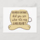Eine niedliche und humorvolle Postkarte für Ostern mit einem lustigen Zitat, das lautet: "Haben Sie gesehen, wer meine Schokolade gegessen hat?"