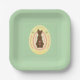Osterplatte mit braunem Party auf gelbem Ei mit grünem Hintergrund