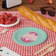 Osterplatte Rosa Ei auf grünem Party Pappteller