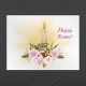 Osterkarte für Christlichen Urlaub. Rosa Blume mit einer Kerze und heiße Crossponnen.