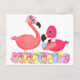 Zwei niedliche Osterrosa Flamingos in einem Haufen Ostereier