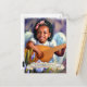Ostersegnung. Kleiner afroamerikanischer Engel mit Lute, der personalisierte osterreligiöse Postkarten malte. Original Malerei von Carlos Maraz, Spanien, 2009. Copyright © Carlos Maraz. Matchkarten und Geschenke für Feiertage & Feiern | Osterkategorie unseres Ladens.