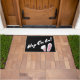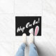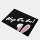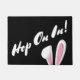 Schwarz-Weiß-Türmatte mit bezaubernden weißen und rosa, sonnigen Ohren, die "Hop On In!" lauten. Die Saison ist perfekt für die Gäste.