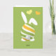 Osterurlaub Grußkarte - Niedliche Grußkarte mit einem Hasen vorne und hinten mit hellgrünem Hintergrund.