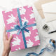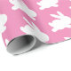 Schönes und elegantes Packpapier für Ihre Geschenke. Das Design ist ein weißes Hasen-Muster auf einem rosa Hintergrund. Toll an Babyduschen oder Ostern.