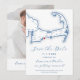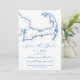 Set den Ton für Ihre Osterville Hochzeit mit diesem modernen Marineblau Save the Date mit einer eleganten Karte von Cape Cod auf der Vorderseite und einem anpassbaren Foto auf der Rückseite. Dieses Design verbindet Stil mit Komfort und bietet kostenfreie Adressierung für Hochzeiten im Oyster Harbors Club, dem Wianno Club oder Armstrong-Kelley Park. Ankündigen Sie Ihren besonderen Tag in mühelosen Küsten-Charme! Artwork by Coastal Map Designs.