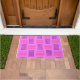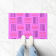 Dieses Türmchen hat ein modernes Design Mitte des Jahrhunderts, das aussieht wie ein Gewebe mit lila und rosa Linien auf einem Feld von leichter lila.