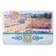 Eine gemischtmediale Abbildung eines Ölgemäldes mit der Ostmauer, auch bekannt als Gebetsmauer, in der Stadt Jerusalem. Bekundete eine schöne Darstellung der alten Ruinen am Tempelberg. Es zeigt den Stern von David mit Olivenzweigen, Menorahs und einer Schildkröte mit einem Stern im Bild. Dieses unverwechselbare Design und die blauen Farbtöne feiern und ehren Israel als Heiliges Land.