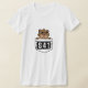 Das Material ist eigentlich gute Qualität, der Stoff ist nur etwas verzogen so dass der Drück leicht schief aussieht. Der Druck ist gute Qualität, habe das T-Shirt schon einige male gewaschen.