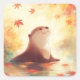 Otter in Water with Falling Autumn Maple Leaves Quadratischer Aufkleber