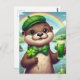Otter mit grünem Bier, Kleeblättern und Regenbogen Postkarte