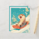 A playful otter sledding joyfully down a snowy hill with bright winter trees in the background. Full of motion and holiday cheer.