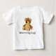 L'adorable photo d'un ours en peluche demandant, "Où est mon câlin ?", est présentée sur ce t-shirt pour bébés. En blanc, avec un ours en peluche brun, ce tee-shirt est offert en différentes tailles, de six mois à vingt-quatre mois. Un cadeau mignon pour le bébé qui aime les câlins!