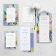 Un programme de mariage floral joliment peint en violet et lavande.