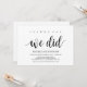 Oui, nous pouvons, nous avons fait, , cartes d'invitation de réception de mariage en fuite. Cette carte d'invitation sur le thème de la fuite de mariage kraft rustique est parfaite pour votre réception de mariage et votre fête de célébration post-mariage. Ajoutez vos détails dans une police / lettrage noir assorti.