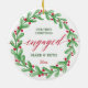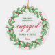 Our First Christmas Engaged Personalized Paare Ceramic Ornament. Personalize with your custom information on both front and back.