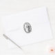A round sticker featuring a vintage graphic of Our Lady of the Rosary holding the Christ Child, both holding a rosary.