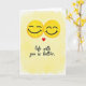 This greeting card shows two bright yellow emoji faces near the top, gently overlapping as if they’re leaning into each other. Both have closed eyes and soft smiles, giving them a calm, happy look. A small red heart sits between them, right where their faces meet, hinting at love and closeness ❤️. The background looks like a light watercolor wash in warm yellow that fades into white around the edges, keeping the focus on the couple. Near the bottom, the card says “life with you is better” in a flowing script style that feels personal and handwritten. The text is dark and easy to read, sitting centered below the emojis like a simple, heartfelt note 💌. Altogether it feels sweet and steady, like a quiet moment shared with someone you care about 🍫. Hope it helps you share your Valentine’s Day feelings with someone special.