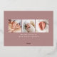 Elegant foil birth announcement featuring "Our New Love" displayed in a rose gold foil script overlay with rose gold foil hearts on each side. Personalize the rose foil birth announcement with a horizontal newborn photo, the baby's name, and birth stats. The announcement reverses to display 3 additional photos and text with a solid dark mauve background. The 4 photo birth announcement is perfect to use as a Valentine's day birth announcement!