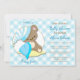 Cette mignonne invitation au baby shower présente un adorable et somptueux petit ours en peluche marron avec un casquette rayé bleu et blanc et des couvertures bleues et jaunes. L'image est encadrée dans un cercle mince de lignes brunes, et placée contre un arrière - plan en vichy bleu et blanc. Il y a un champ de texte personnalisé en bleu foncé en haut et en bas, et vos informations sont en bleu et en marron à droite. L'arrière de l'invitation est assorti au bleu solide. Assurez-vous de voir les produits correspondants dans notre magasin.