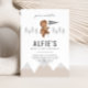 Un ours d'aquarelle brille un drapeau portant le numéro un, avec des arbres et des montagnes autour du design. Parfait pour votre fête d'anniversaire à thème ours de montagne ! Vous pouvez modifier le 'one' dans l'indicateur en n'importe quel nombre, et modifier tout le reste du texte.