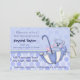 Douce invitation bébé garçon douche avec adorable ours en peluche bleu équitation dans un parapluie, grands points et autres touches spéciales. Customisez avec vos informations.