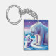 Plutôt bleu et blanc, un ours polaire avec son petit passe un moment spécial sur la glace. Porte-clé an acrylique.