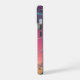 A stunning sci-fi artwork showing a colossal UFO hovering above a glowing pyramid as a blue energy beam shines through the sunset sky. The mix of purples, blues, and oranges gives a surreal cosmic vibe, blending ancient mystery with futuristic energy.