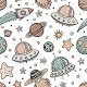 Playful rocket ships, planets, and stars in a vibrant space theme