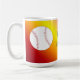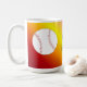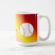 Ein lustiges Spieldesign. Weißes Baseball mit roten Stichen auf gelbem und orangefarbenem Hintergrund. Das Sprichwort 'Big Hitter' kann nach Wunsch auf etwas Anderes umgestellt werden.