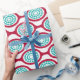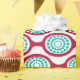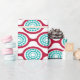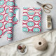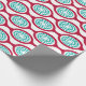 Dieses Verpackungspapier hat ein modernes Design von rübenfarbenen Ovalen, die zu Ketten mit türkisfarbenen konzentrischen Kreisen aus Kreisringen im Inneren verbunden sind. Das gleiche Design, verschiedene Farben? Nachricht.