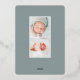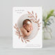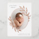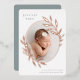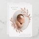 Une faire-part de naissance élégante est dotée d'une seule photo verticale/portrait de forme ovale, ornée de feuilles roses en métal doré. Personnalisez avec le nom de votre bébé, la date de naissance, les statistiques et une signature familiale. Ajoutez deux photos carrés supplémentaires à l'arrière.