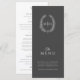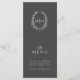 Graue und weiße Speisekarte zum Hochzeitsessen. Bearbeiten Sie dieses 4-Gänge-Menü mit der eigenen Menüoption. Moderne und dennoch klassische handgezeichnete ovale Blätter und Monogramm Monoton-Design. © Original oval zeichn und Design von Sarah Trett für www.mylittleedenweddings.com exklusiv auf zazzle.