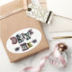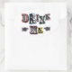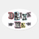 Autocollant blanc ovale avec l'image de l'expression "Buvez-moi" en lettres de bloc colorées et anciennes et deux mains, chacune avec un doigt pointant sur le mot "Moi". Voir la balise de faveur correspondante. Voir l'ensemble de la collection Wonderland Sticker dans les INVITATIONS | Section Stickers & Étiquettes.