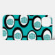 Dieses Handy Gehäuse hat ein modernes Design von Linien, die Kreise in Ovalen, die in Türkis, Schwarz und Weiß aneinander gereiht sind.