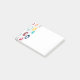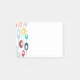 Dieses Post-It Notizblock hat ein modernes Design von Ovalen in Retrofarben auf kurvenförmigen schwarzen Linien.