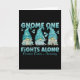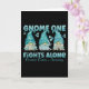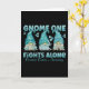 Ovarialkarzinom-Design mit aquamarinen Gnomen mit den Worten "Gnome one fights Alone". Für jeden, der gegen Eierstockkrebs kämpft. Kann während des Monats der Krebsaufklärung getragen werden.