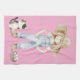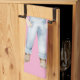 rosa Geschirrtuch mit Mädchen, Katze und Korb mit Eiern
