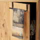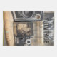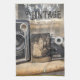 Ein paar Vintage Kameras mit einem Vintagen Glasplatten-Druck von gut gekleideten Damen auf einem alten Regal mit dem Wort, Vintag, das man ändern kann, um Ihr eigenes Wort Ihrer Wahl.