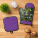 Lila und gelbes tropisches Design mit einer schönen großen grünen Mit Augen Pflanze, aus einer Sammlung namens "Planty Stamm", Oven Mitt & Pot Holder.