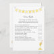 Ein lustiges Spiel für die Babydusche ist das Over and Under Spiel. Dieses Spiel enthält oben ein gelbes Banner und einen Honigflossen. Auf der Rückseite ist ein Junge Teddy Bär, der auf einem Honigfass aufbaut und eine Honigbiene mit Vorlagen beobachtet.