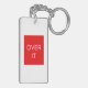 A powerful and direct statement piece. The design features the phrase "OVER IT" in a stark white, clean sans-serif font, emphasizing the feeling of being finished or moving past a situation. The bright red square and black background create a sense of urgency and clarity. Ideal for those who love bold, straightforward designs that communicate a mood.