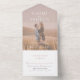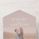 Moderne Hochzeitseinladung mit weißem Pinselrahmen und traditionell eleganter Typografie im Foto.